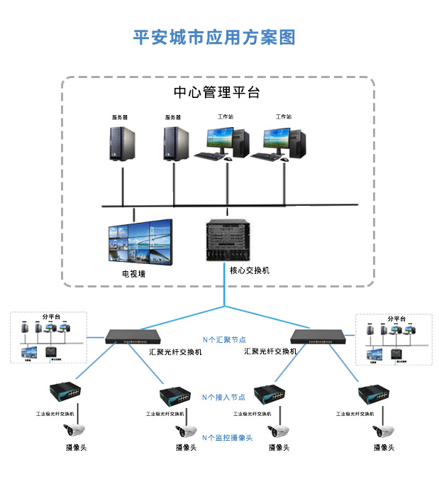平安城市是一个特大型、综合性非常强的管理系统,不仅需要满足治安管理、城市管理、交通管理、应急指挥等需求,而且还要兼顾灾难事故预警、安全生产监控等方面对图像监控的需求,同时还要考虑报警、门禁等配套系统的集成以及与广播系统的联动。